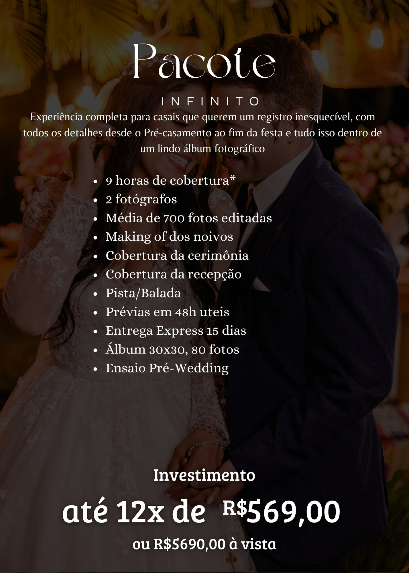 Comecei com poucos recursos e muita vontade de contar histórias reais. Desde então, já registrei casamentos, aniversários, ensaios e batizados, sempre com um olhar atento ao que realmente importa: o sentimento por trás de cada imagem.
