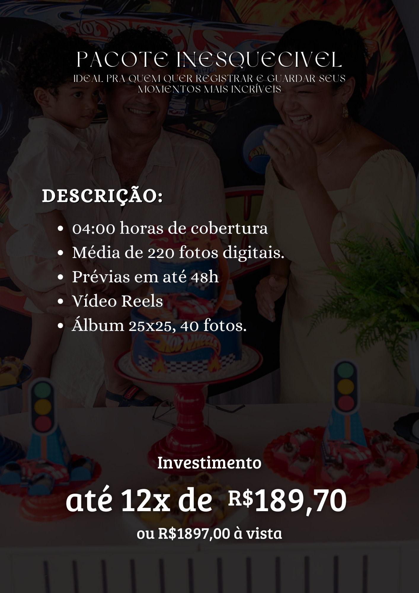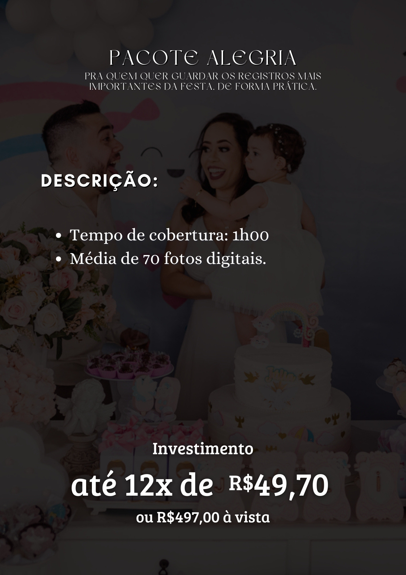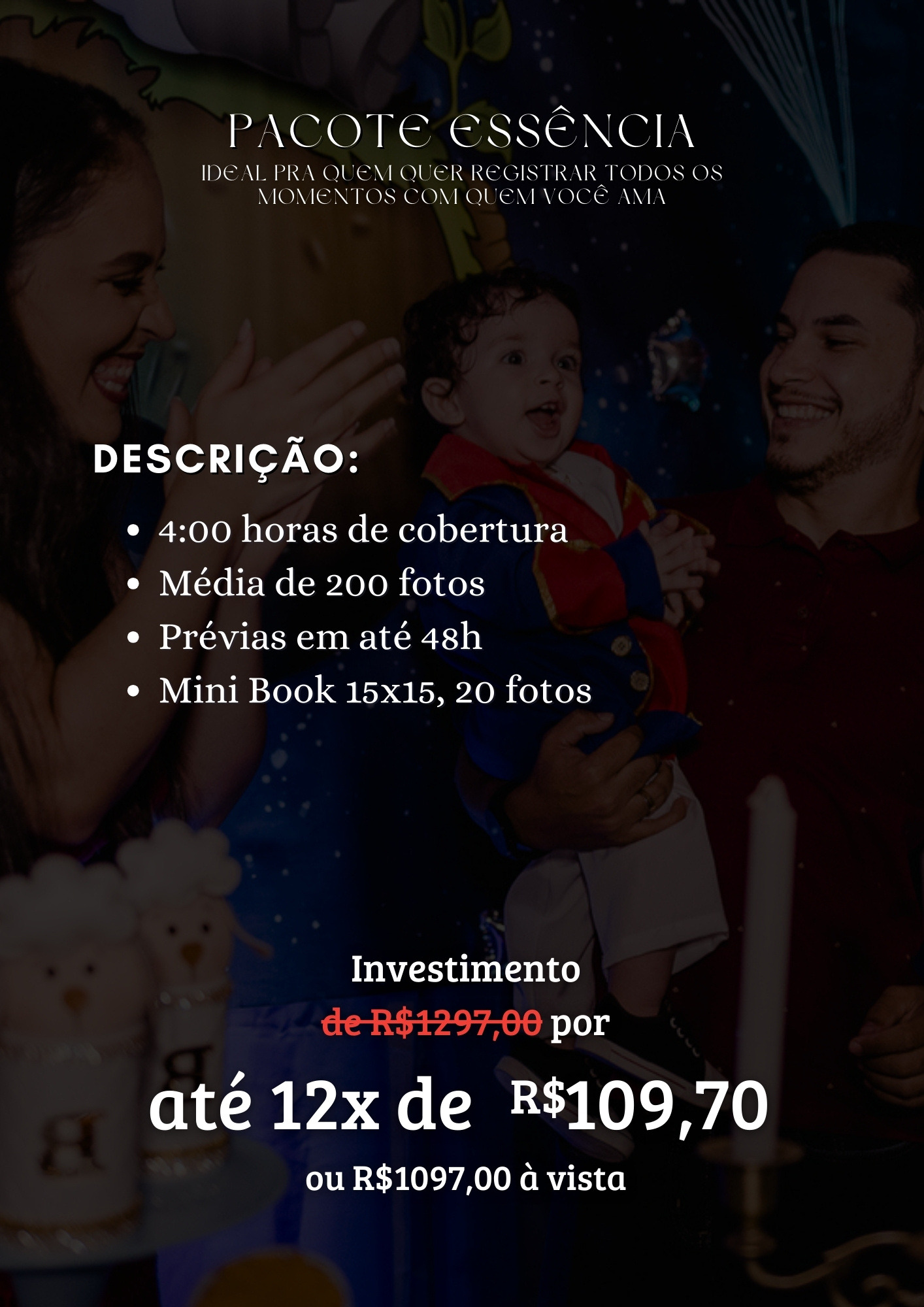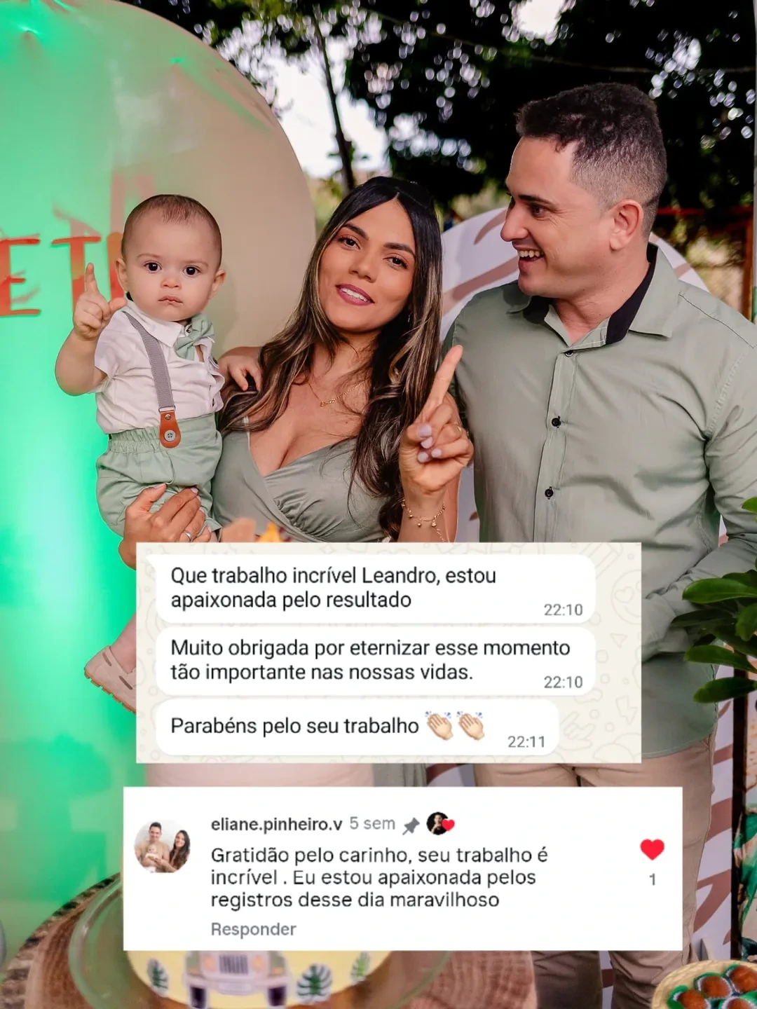 Sou Leandro Sales, fotógrafo desde 2018, especializado em registrar momentos com verdade, leveza e conexão. Marido da Simone, pai da Gabriela e tutor do Shiro, e quando não estou com a câmera, tô vendo um anime, uma boa série ou jogando online, porque viver também é colecionar histórias fora da lente. Comecei com poucos recursos e muita vontade de contar histórias reais. Desde então, já registrei aniversários, casamentos, ensaios e batizados, sempre com um olhar atento ao que realmente importa: o sentimento por trás de cada imagem. Fotografo aniversários porque acredito que cada festa é um capítulo único da vida, cheio de detalhes que passam rápido demais. Quero guardar a essência desse dia o sorriso de quem chega, o abraço de quem fez falta, a felicidade genuína no parabéns, a conexão entre quem realmente importa. Mais do que fotografar, eu conto histórias reais, com empatia, intenção e propósito. Meu trabalho é pra quem valoriza o afeto acima da pose e a emoção acima da produção. Porque, no fim, o que eu entrego não são só fotos, são memórias vivas, pedaços de tempo que você pode sentir de novo, daqui a um ano, dez ou cinquenta.