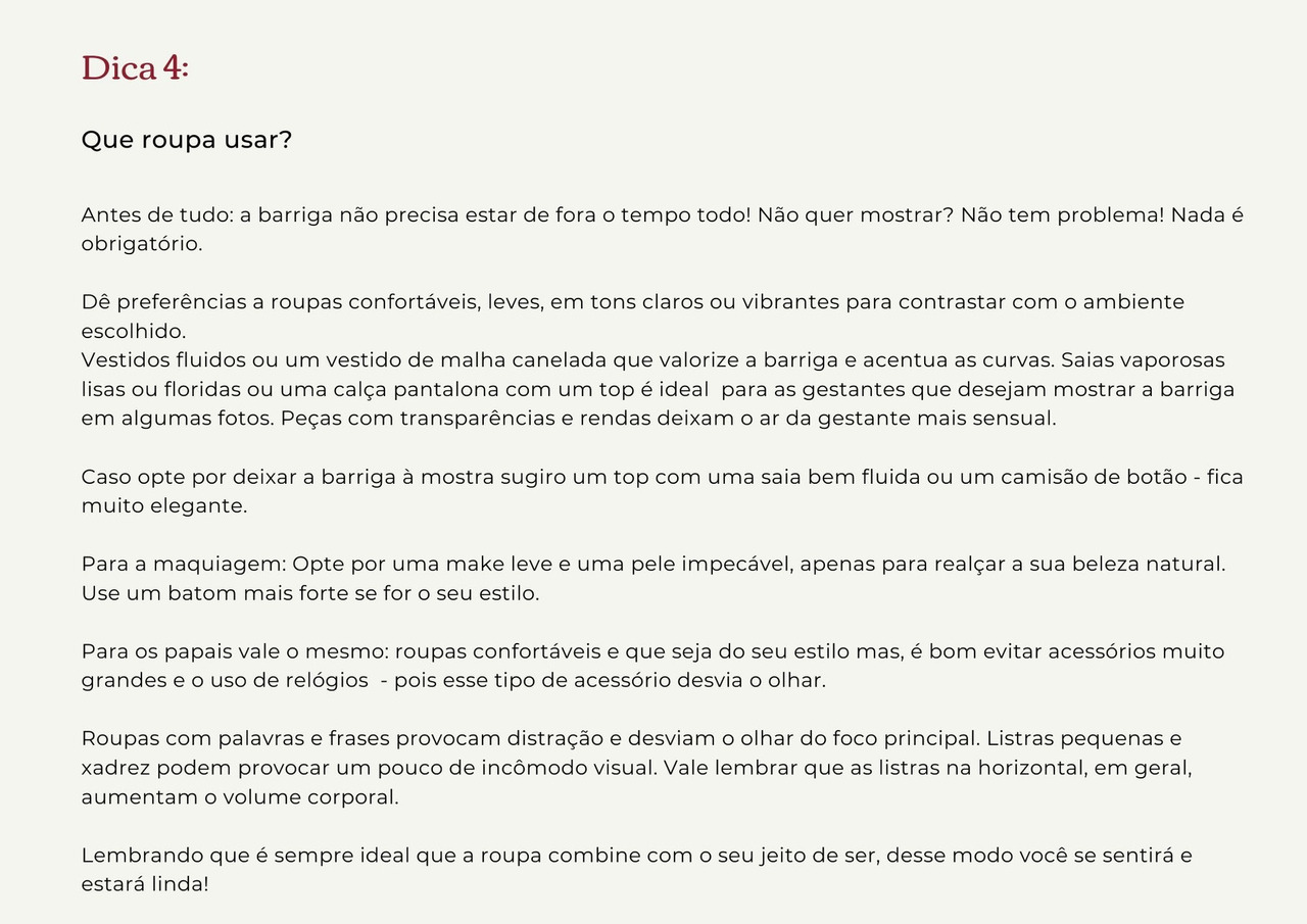 E ai, curtiu as dicas ? Se sim, compartilhe com outras futuras mamães, ou com aquela sua amiga que está gravida e ainda não realizou um ensaio fotográfico, afinal a barriga não vai estar lá para sempre e é bom ter esses registros né ?